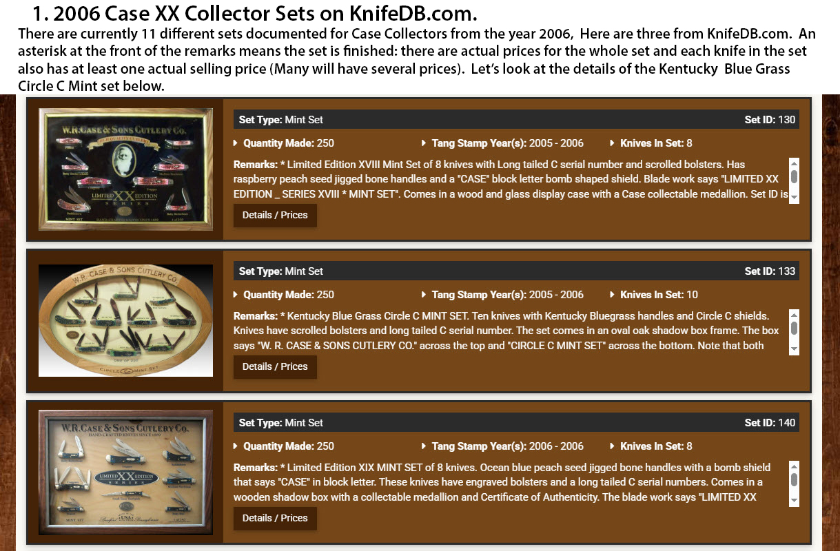 18,000 CASE XX pocket knives before 2011 listed with 19,000 detailed pictures.