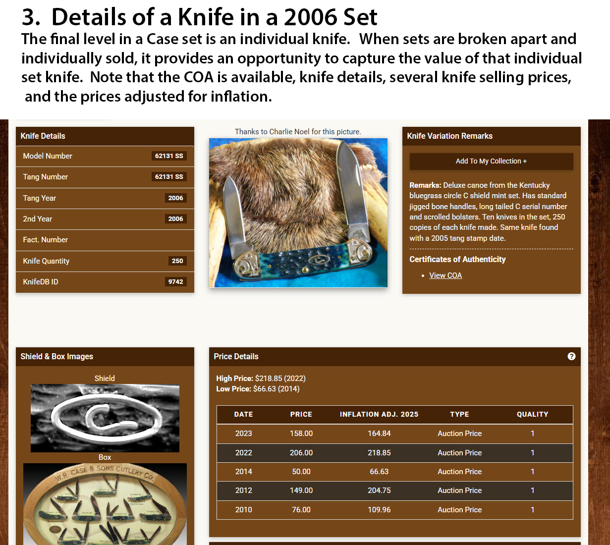 Over 25,000 individual knife selling prices with date sold and knife condition.