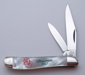 Christmas is a time of joy and family love, as well as gift giving.  In the the 1970’s the Case factory began to figure out that Christmas was a great time to gift someone a Case pocket knife.    The first Christmas pocket knife I have found was from the year 1976.  The handle said “Merry Christmas 1976”.  Over time the design became more and more complex. adding blade work, bolster work, serial numbers and  more religious themes.  I am currently working on 2016 and I can tell you that between that first knife in 1976 and 2016, there have been at least 376 Christmas knives made.  Here are some samples.    If you wanted to start a collection of Christmas goodies, seems like right after Christmas would be a good time to start.