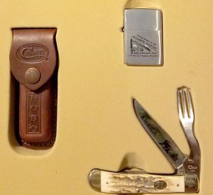 The Allegheny Mountain Knife Collectors Association (AMKCA) was founded in 1982.  At this time I have only seen two folding Case knives from this club.  Have seen a Case straight knife, but I just do folders.   I do not have a quantity made on these, but they are both handsome knifes.  The club is still active and their web site talks  a lot about knife shows.  Hear are the two found so far.   Notice the Zippo in the HOBO set.  Very unusual in a club knife.  Get all the details inside.