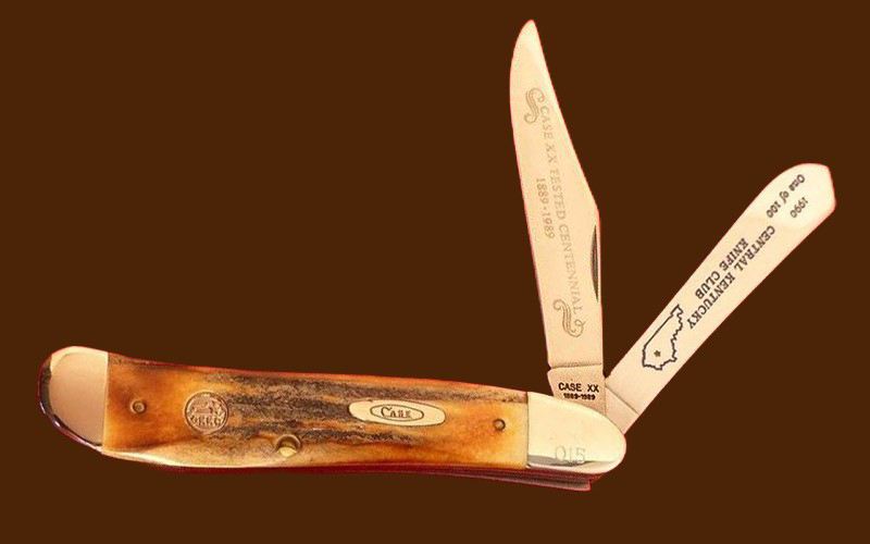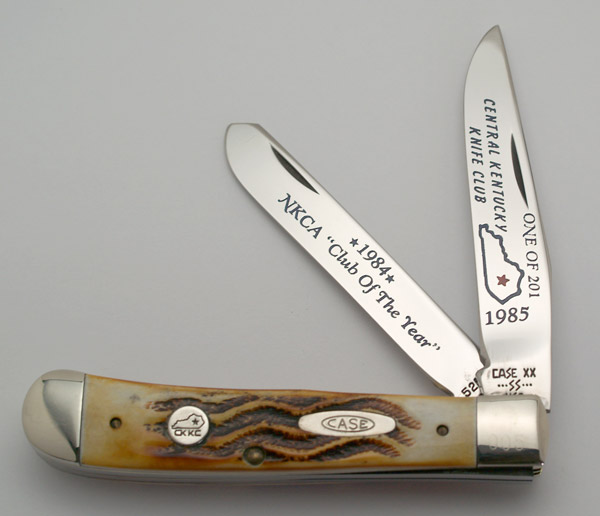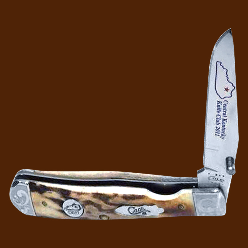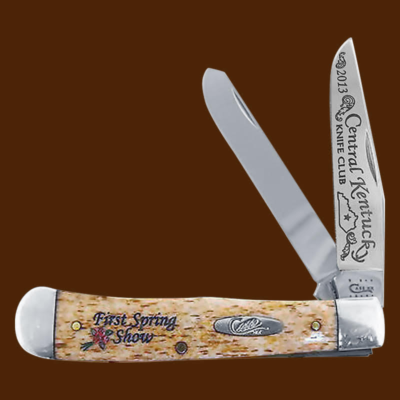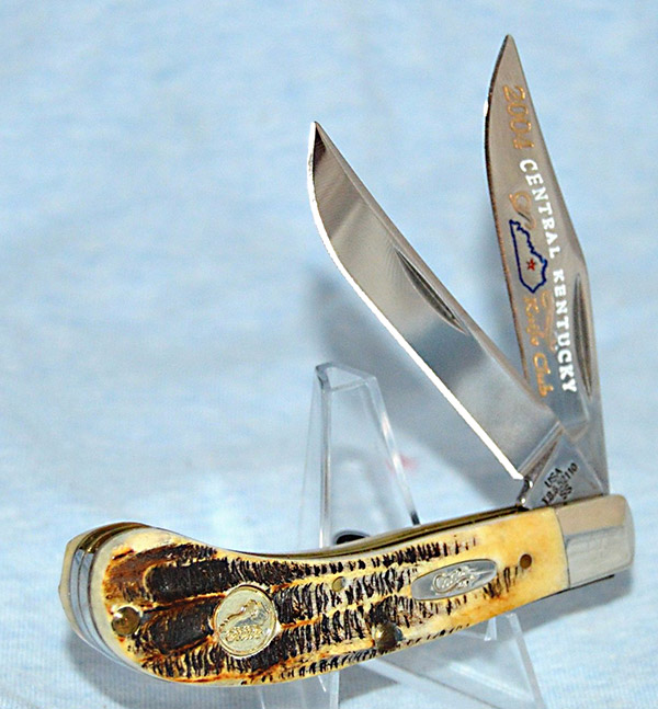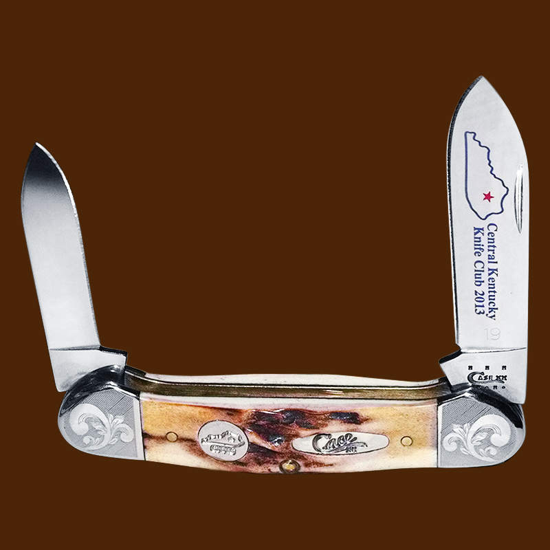 The Central Kentucky Knife Club has had a great run, creating at least 26 Case xx knife variations.   This Lexington Kentucky club started with a 53131 stag canoe in 1983 (tang date was 1981).  The last knife I have found was from 30 years later.  It was a a 2013 52131 stag canoe.  The great thing about this club:  of the 26 Case variations 18 were made with stag, and two were made with bone stag.  The other 6 were made for knife shows the club hosted and had other handles.  All the annual knives were high end production.  I only found a few production quantities on these knifes.  The largest edition had 201 knives, the smallest had 78,    Here are some of the beautiful creations.